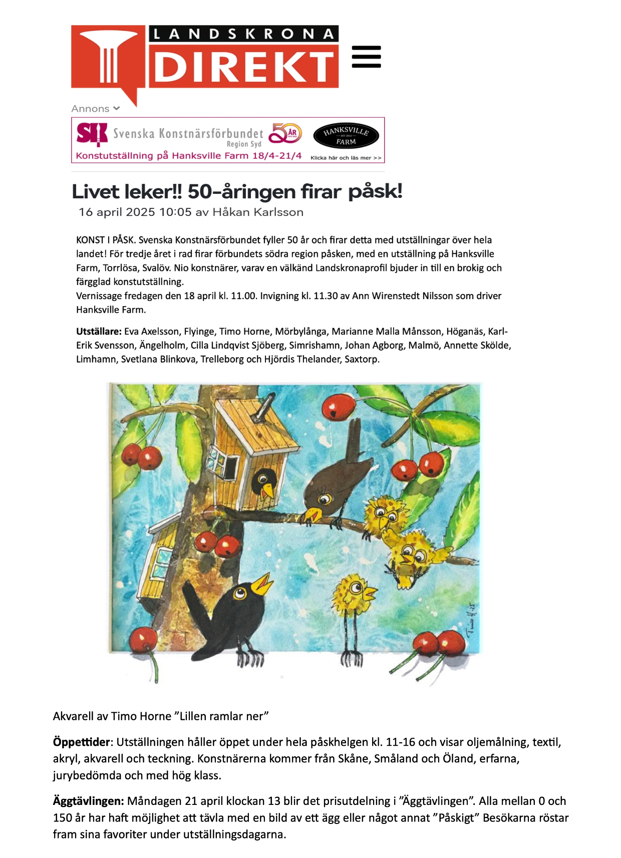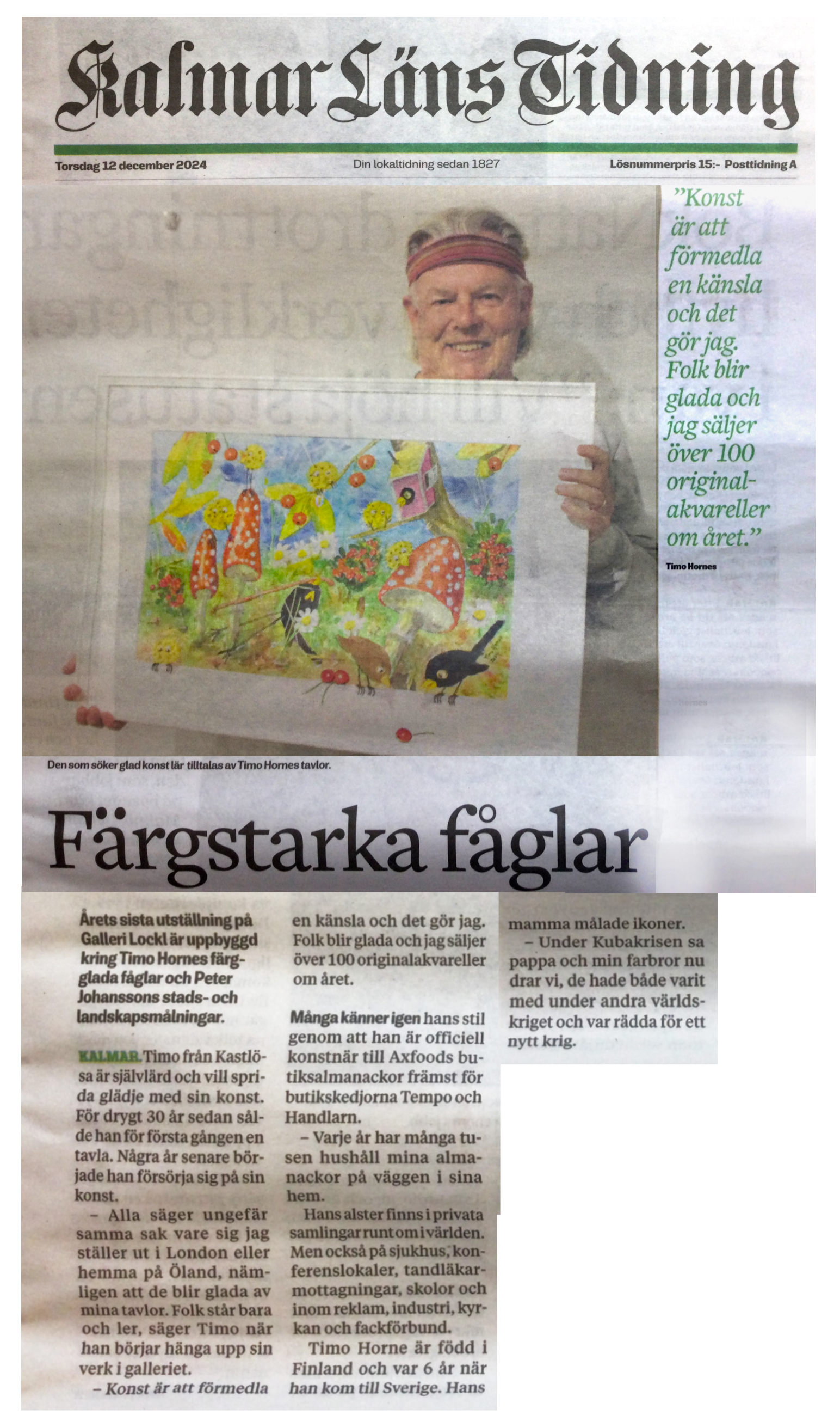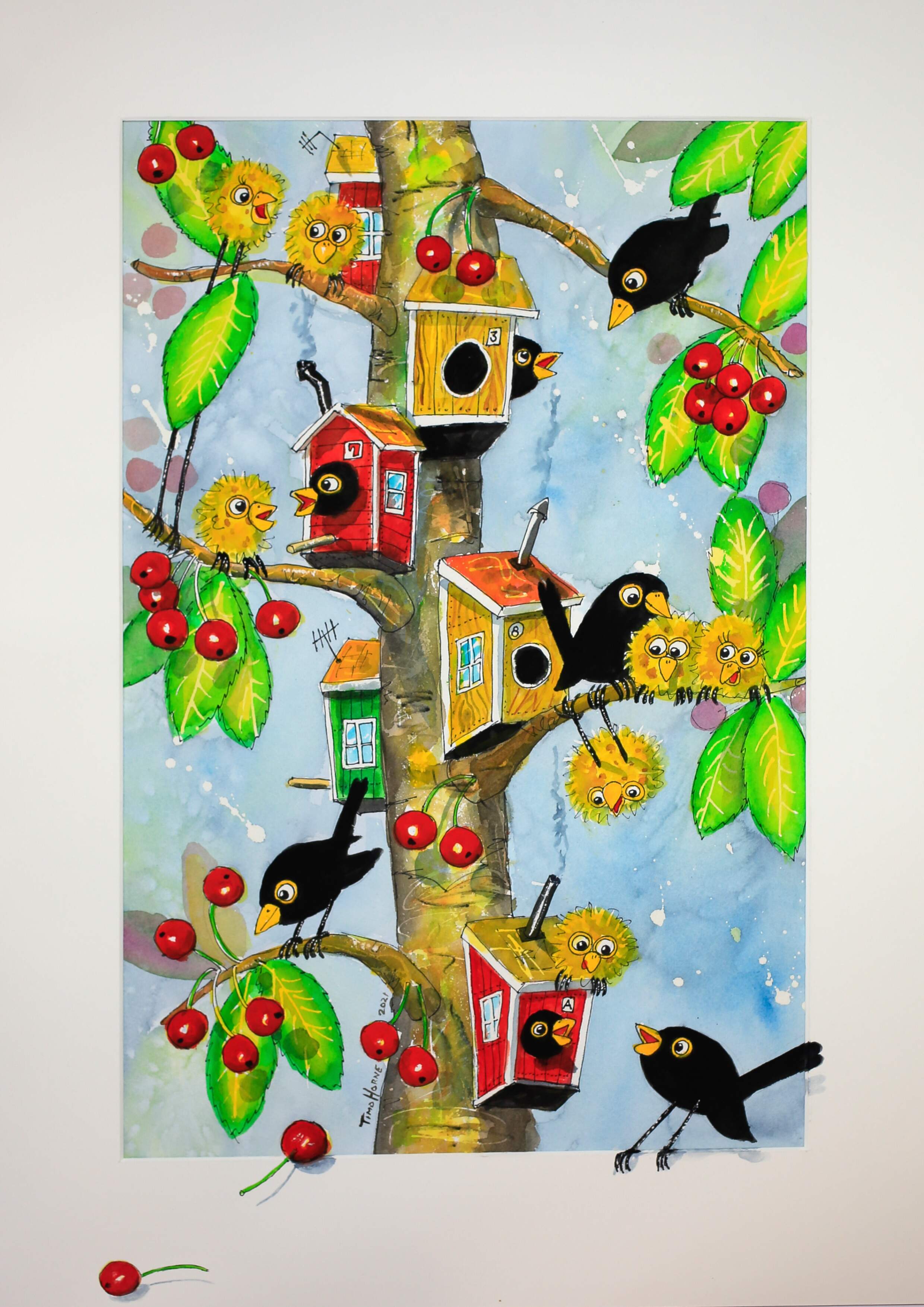 Sveriges gladaste tavlor med tokroliga fåglar, koltrastar och fågelholkar.Ateljé och galleri öppen året runt, bokade besök. email: timo@timosatelje.seKastlösa 177, 386 61 Mörbylånga, Öland